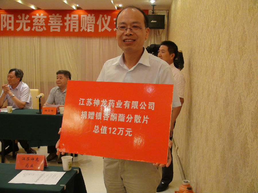 為進一步弘揚人道主義精神,發揚扶貧濟困、樂善好施的傳統美德。9月26日上午,東臺市陽光助殘基金會發起的陽光慈善捐贈儀式在軍轉大廈三樓會議室舉行。儀式由助殘基金會副會長徐寶祥主持,市政協領導及來自市內外近50家社會團體、企業代表出席捐贈。 我公司作為東臺的一家知名企業,積極參加了此次陽光助殘慈善活動,黨總支書記、副總經理苗俊同志代表公司向市陽光助殘基金會捐贈藥品銀杏酮酯分散片1500盒,總價值12萬元。 神龍藥業多年來一直響應市委市政府號召,熱心關注慈善事業,自2012年開始,連續4次參加東臺市助殘基金會發起的助殘捐贈活動,積極關注社會弱勢群體、關注社會上需要幫助的人。 ?????????????????????????????????????????????????????????????????????????????????????????????????辦公室:周佩佩 ? |