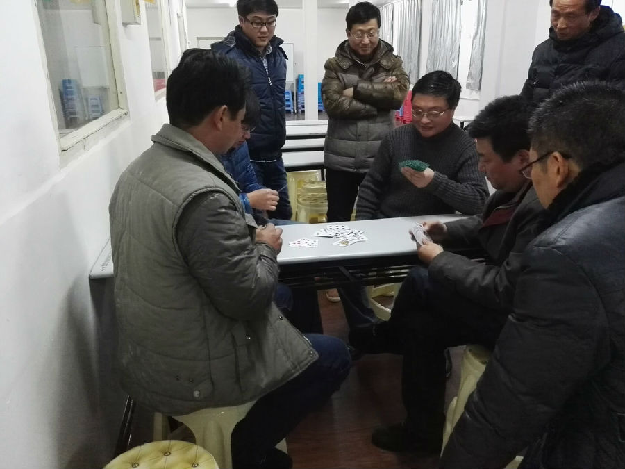 隨著新年腳步的臨近,一年一度的“神龍杯”摜蛋比賽如期進行。經過前兩年的牌藝切磋,各車間部門的牌技高手迅速組隊,踴躍報名。 本屆摜蛋比賽于12月28日下午四點準時拉開帷幕。參賽選手通過抽簽的形式捉對展開較量。經過前兩天的激烈“廝殺”,比賽于30日下午進入決賽局,四隊高手對決,“戰況”更是膠著。在你來我往、難解難分中,大家紛紛打入A。由楊春兵和周華鋒組成的中藥提取代表隊率先過A,蟬聯冠軍。魯馮存、王勁松組成的原料藥代表隊惜敗,獲得亞軍。銷售部門周亞斌、趙純成為本屆季軍。 在這場腦力與經驗的比拼中,大家相互交流,更增進了友誼。在歡笑與遺憾中,大家意猶未盡地結束了本屆“神龍杯”摜蛋比賽,