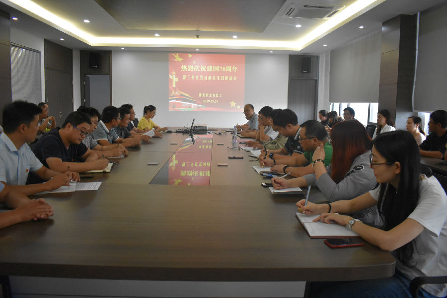 會議最后,公司總經理周平作講話,他表示:在祖國70周年華誕來臨之際,我們神龍藥業黨總支舉辦這次主題教育動員會意義十分深刻。當前,“不忘初心、牢記使命”主題教育已經進行到第二階段,公司所有黨員同志要緊跟時代步伐,堅決抵制一切與時代不和諧的聲音,積極宣傳正能量。作為一名普通黨員,我們身處在這個偉大的時代,要把所學運用到工作中去,要有干事創業、勇于擔當的精神,為社會和企業的持續穩定發展做出新的貢獻。